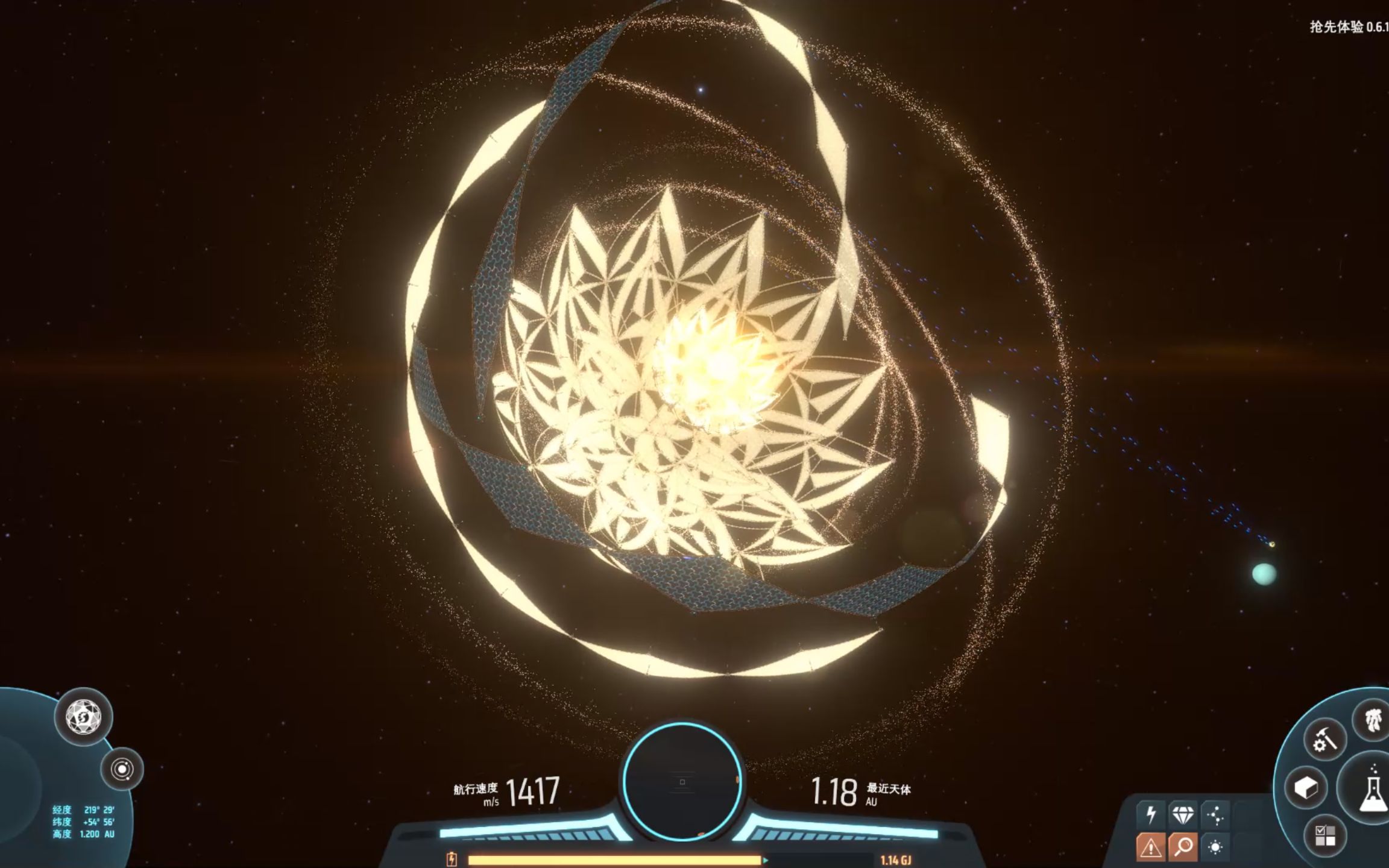 到这里,游戏的大部分内容均已解锁,在实现能源自由以后,已经可以无压力铺设流水线,建设不同造型的戴森球。由于第一个存档玩得相对粗糙,我只造了两颗全包裹的戴森球,这里就不放图献丑了,社区内有不少造型酷炫的戴森球蓝图可供参考,链接回头补上。而对于追求自动化工厂生产效率的玩家,除了搓球以外,可以尝试对产线进行优化,使用更少的面积、设备实现更高的白糖产出,听起来是不是像是FPGA中减少逻辑单元、寄存器和其他硬件资源的使用,同时提升设计性能和效率。毫不夸张的说,戴森球计划是名副其实的行星电路板,是一份独属于工科生的浪漫。
